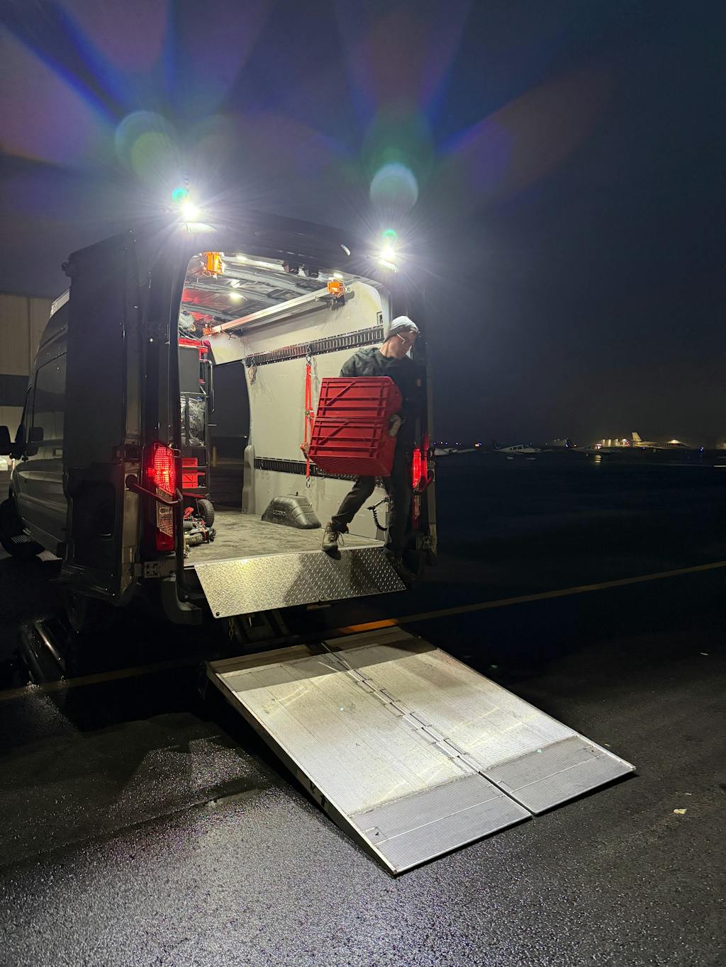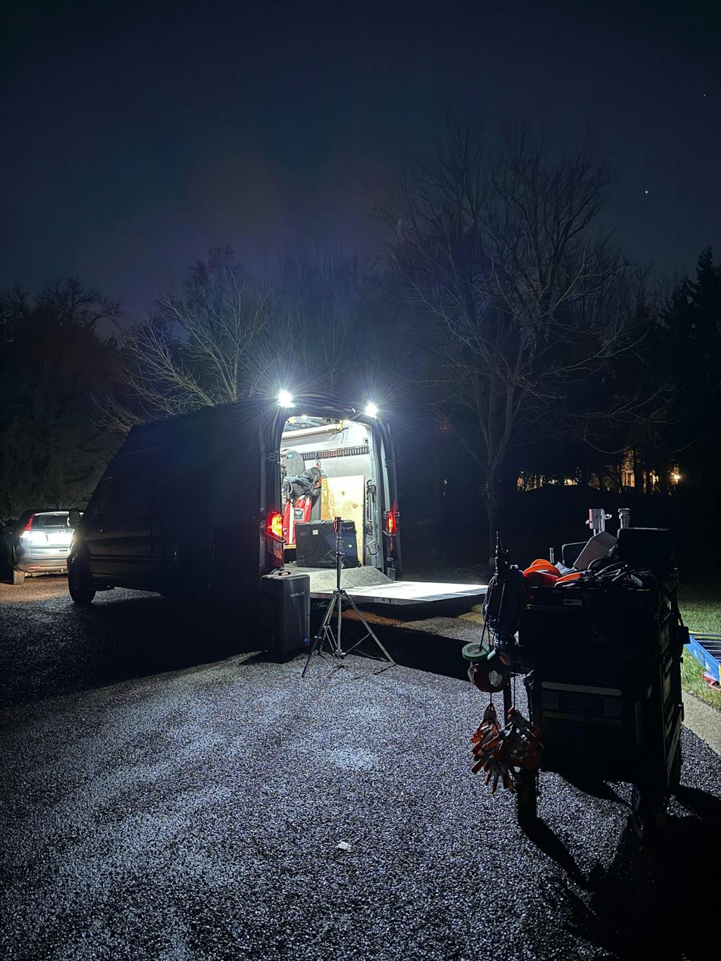 Great roof rack for Transit! We've been rocking the Stealth Roof Rack on our 2023 Ford Transit 350 High Roof XL AWD for a year now and it's been excellent. No noise, vibration, wind drag and it's designed nicely to snug up against the roofline. We ordered ours with the 2X scene (rear flood) lights and I highly recommend that. It's a nice easy way to shine some light on your loadouts and load-ins at night or while the sun is coming or going!